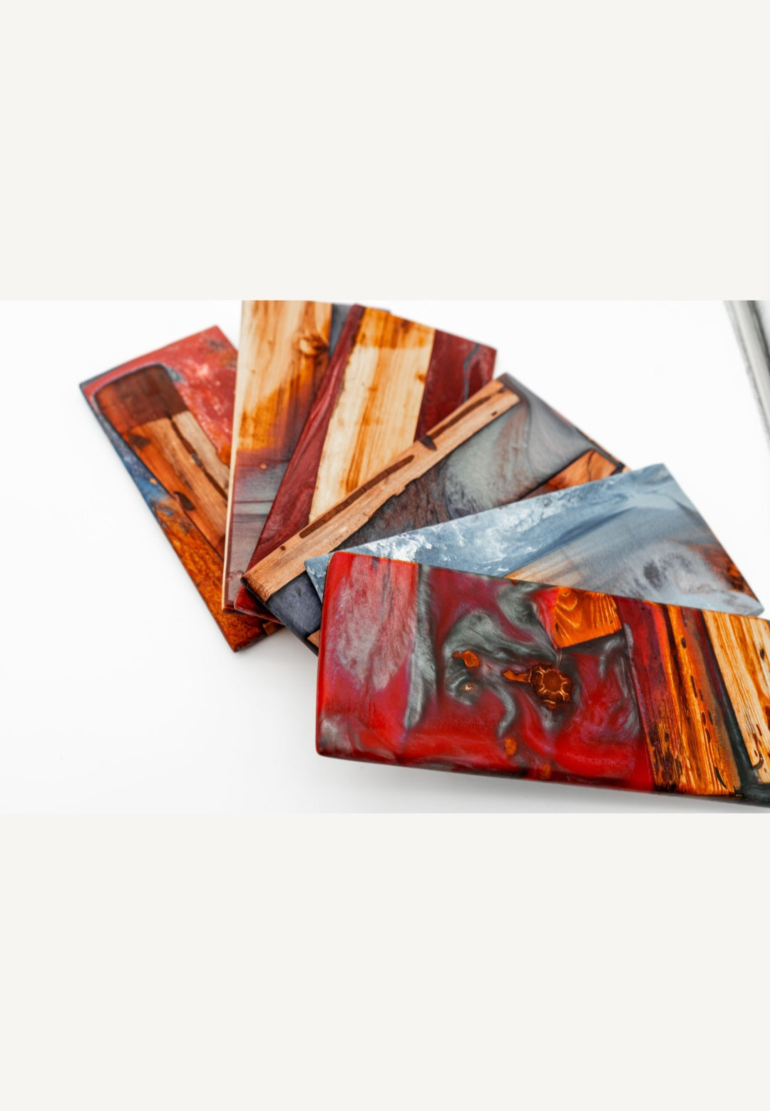 Acrylic resin and hardwood grown on Bigbluesmans Farm. Hand crafted and milled wood that looks as if its swimming in colorful marble.